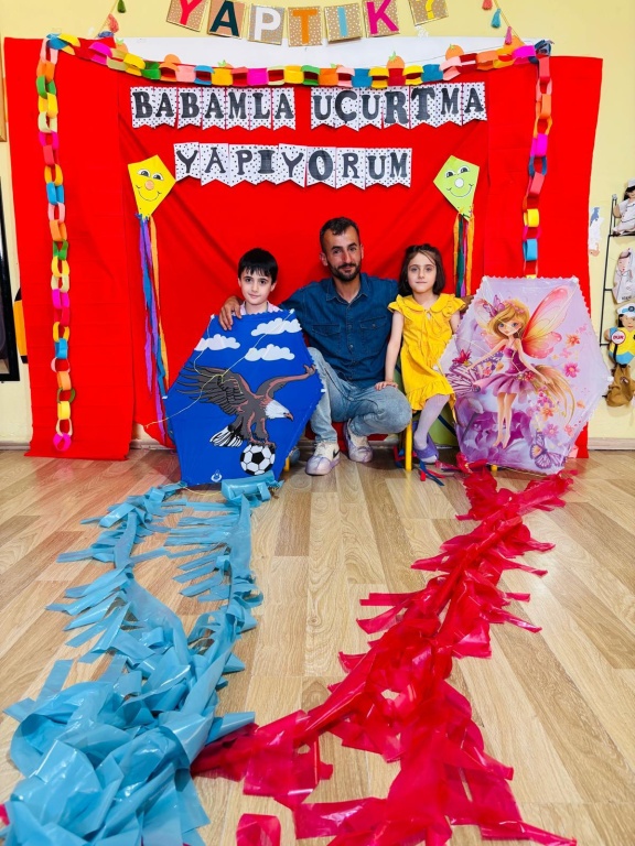 Ailelerin çocuklarının gelişimlerini yakından görmeleri ev ile eğitim kurumu arasındaki iletişimin artırılması ve sürekliliğini sağlanması amacıyla Babalarla uçurtma etkinliği yapıldı.